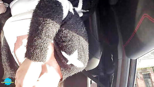 Horny stepmom masturbates and orgasms in the car while stepson films her