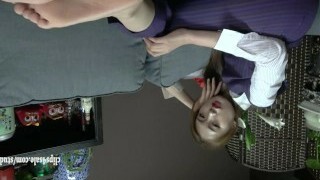 First footjob from cute Asian girl with perfect funbags