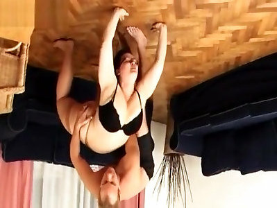 Fat cupcakes ash-blonde Andreykina does gymnastic poses on the floor
