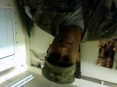 Tall and bulky soldier Jake Bane playthings his brit group manhood