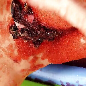 Their big fake boobs look marvelous covered with red jello while lesbians fuck