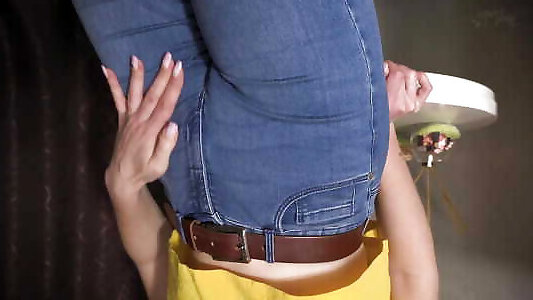 Sexy Milf Teasing Her Big ebony teen thot swallow In Tight Blue Jeans