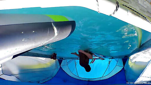 Podvodkova swimming in blue bikini in fat tool pool