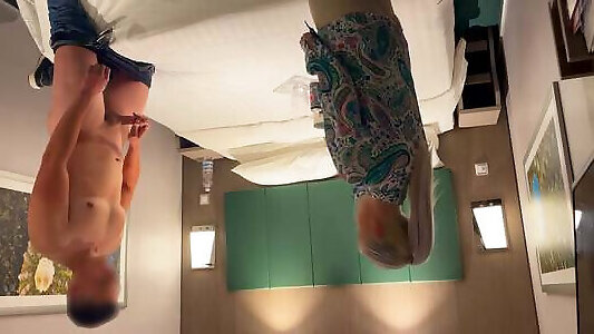 185 Dick Flash - the Student Pull Out Cock in Front of His Teacher in the Sauna and She Helps Cum