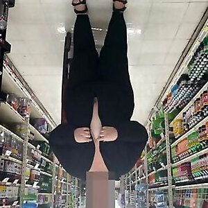 Demonstrating my hooters at the supermarket.