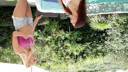 A game of cards quickly turns into intense lesbian sex between a redhead girl and her blonde friend