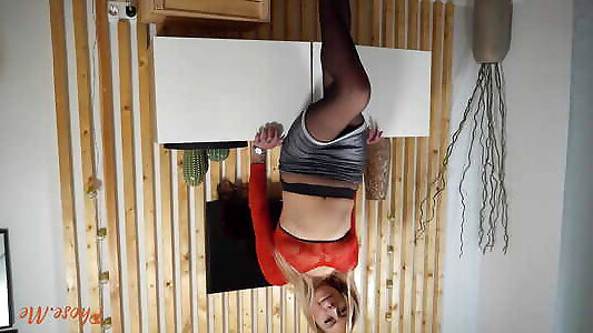 Slutty Blonde Teasing In See Thru Shirt, Shorts and Pantyhose