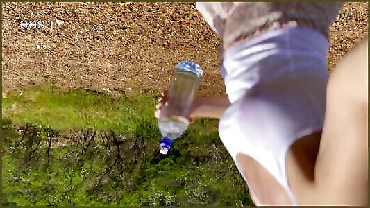 Outdoor Pissing in Public Park and Lake by Sexy Blonde