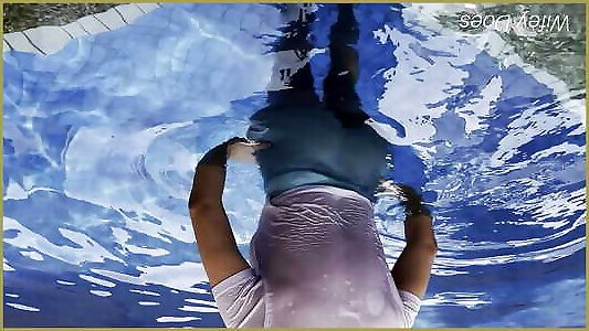 Wifey goes braless in a public exhibitionist dare in a public pool