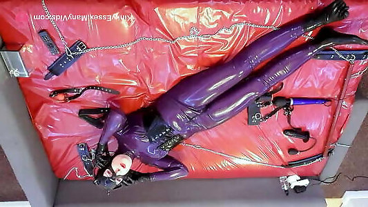 Self Restrain Bondage, Sensory Deprivation And Doxy Magic Vibrator Corset - Super-cute Lady In Rubber Spandex Catsuit