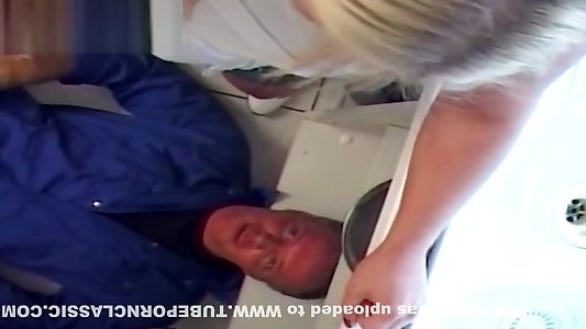 Kinky mature fuckslut with red glasses can&039;t stand against to poke with 2 men