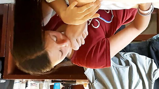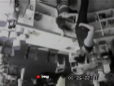 Security webcam footage of a jaw-dropping brunnette providing head in a store
