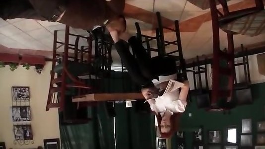 Phat breasts brown-haired pulverized in public caffe
