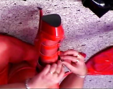 nippleringlover – wild cougar in high stilettos, stocking and see thru top with fettered pierced nipples, pierced puss an