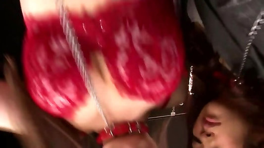 Mei Haruka in chains and stockings is banged in gullet and labia
