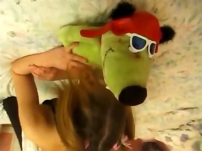 This ultra-cutie has got icy blue eyes and she fellates her dildo like a champ