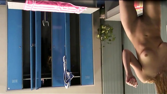 Stunner displays nude tits and edible honeypot in the switching room