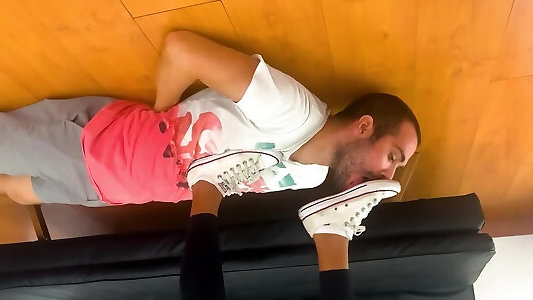 Cock Crushing Full Weight in High Converse Shoes - Bootjob, Shoejob