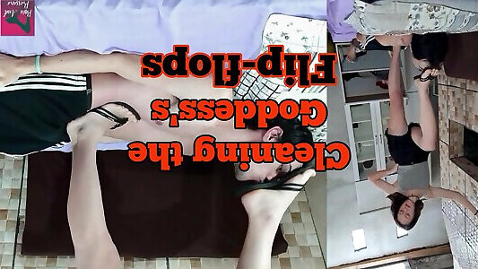 Mistress Teases the Slaves as They Clean the Floor with a Rag and Punishes the One Who Is the Worst at Cleaning.