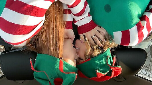 Horny elves cumming in drive thru with lush remote controlled vibrators featuring Nadia Foxx