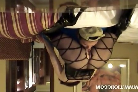 Cocksucking stunner doggie-style porked for cum on her immense funbags