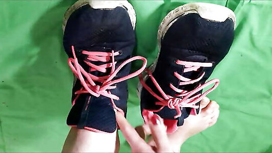 Inexperienced footjob 76 blue nylon pantyhose - kicking balls, punching and jizz