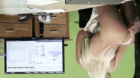 Sensitized platinum-blonde gal Lexi Guzzle bangs missionary on the table