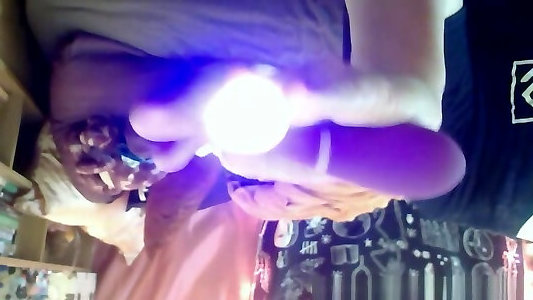 Web Cam blond mega-bitch gives older guy jerking off of her new hitachi