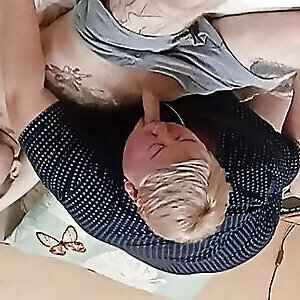 Mother-in-law sucks dick and gets cum down her throat swallowing it
