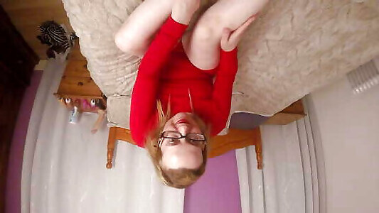 Leggy blonde wife in red gay bijirihan and high heels playing with her shaven pussy on cam