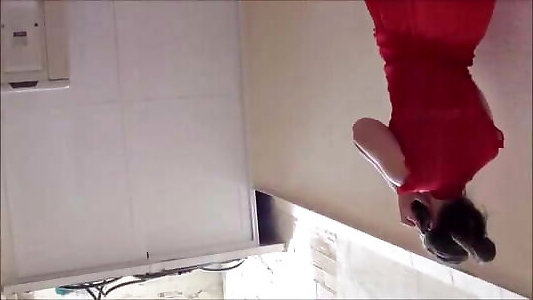 A graceful striptease of a limber dame. Crimson sundress
