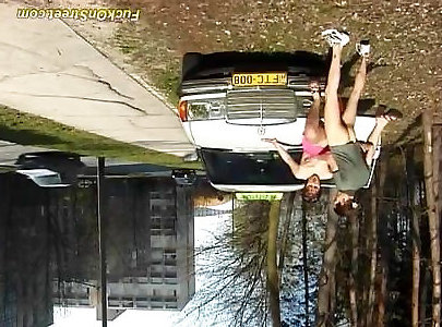 Sloppy aged crank 18 yo couples boinks super-steamy black-haired on the van rubber hood