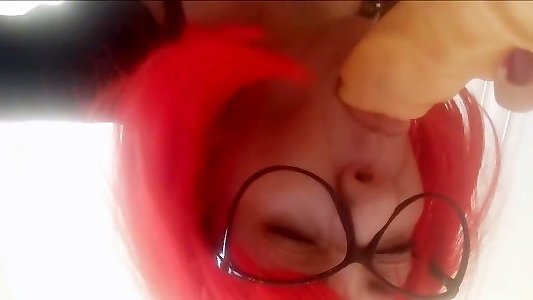 Redhead fuckslut in striped socks in couch gets cooter deep-throated and porked by antsy lollipop