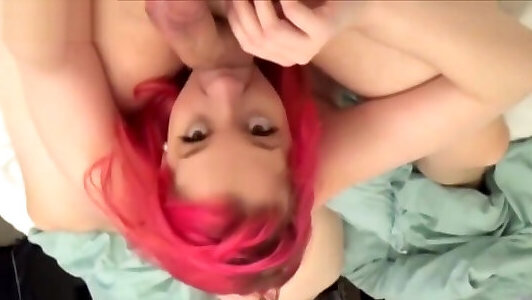 Redheaded bitch spit dribbling all over her immense fucktoy