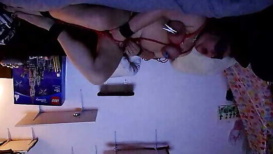 I spank my submissive slave&039;s tits and fuck her hard vaginal cream for my penis I squeeze the hooks on her big nipples