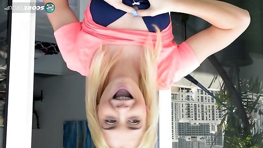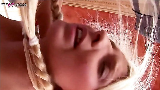 Smoking blond hotty taunts with her mind-blowing melons and her donk