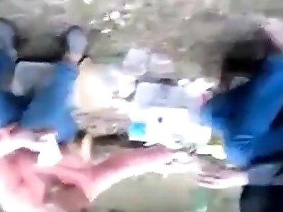 Latin Kalinas outdoor blowage and showing unexperienced brunettes public