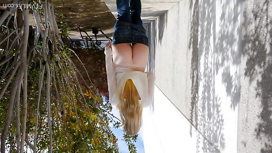 Infatuating blonde honey shows puffies and cooter in a bustling outdoors shoot