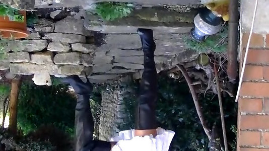 Super-naughty ash-blonde smoking in leather footwear and providing upskirt close ups of her marvelous puss