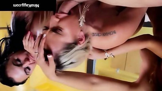 Lezzie hottie pussylicked on kitchen counter