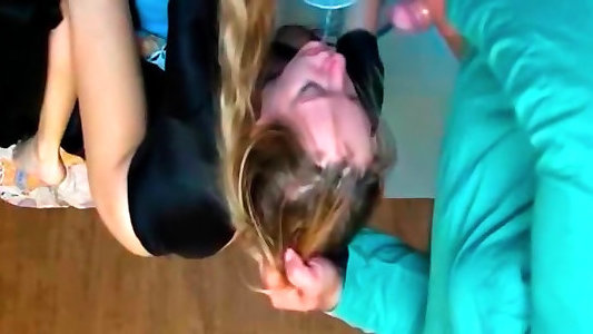 Bewitching golden-haired gf deep throats on webcam and receives jizz in her face gap