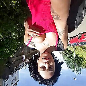 Teen brunette girl flashing her tits on the street and gets caught Onlyfans trailer