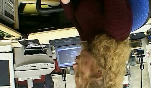 Buerokraft mit grossen Nippel wird vom Chef gefingert