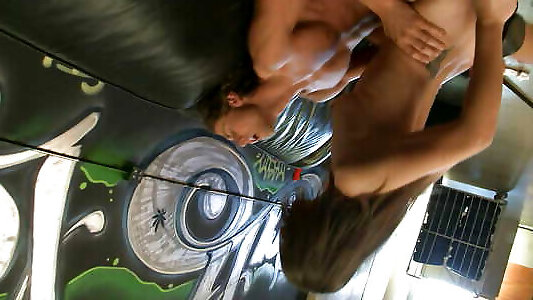 Smooching and eating outdoor lezzies masturbate and faux-cock screw