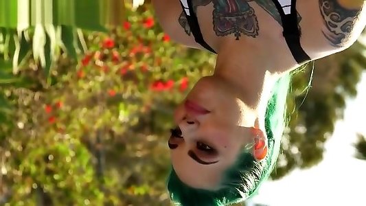 Emo Plus-size With Tats Smashes Strange Fan