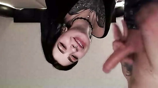 Goth Girlfriend Gives POV Good Night Deepthroat Blowjob