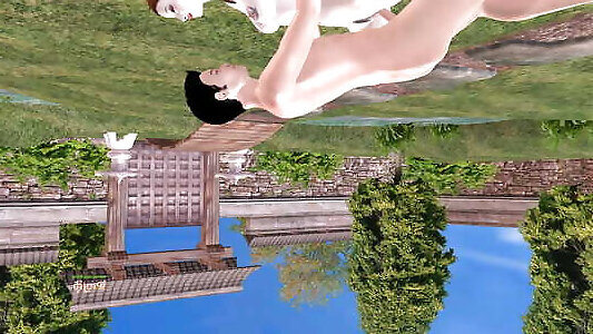 A Cute girl having sex with a man in garden at machinery position and got multiple orgasm - Animated porn video
