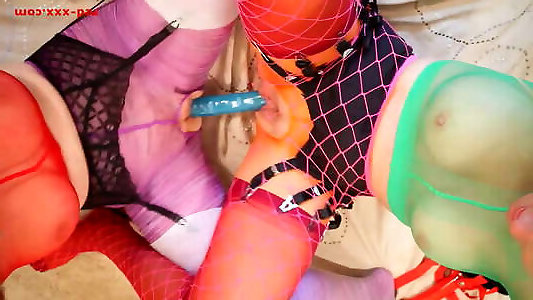 Handsome brown-haired princesses in fishnets have crazy all girl joy