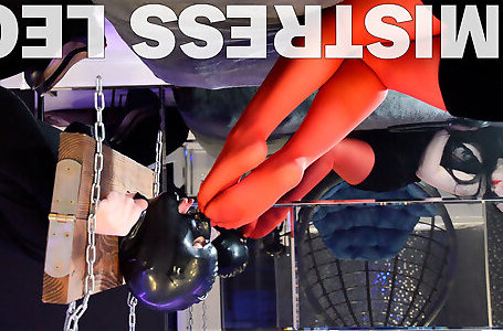 Shackled Victim Worships Mistress&039;s Crimson Nylon Legs