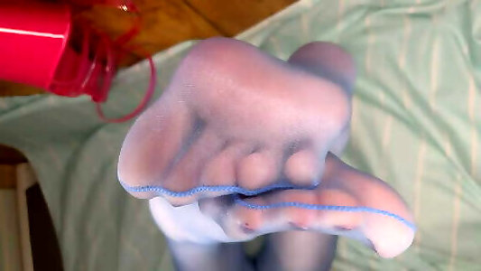 Blue nylon stockings soles, toes and feet
